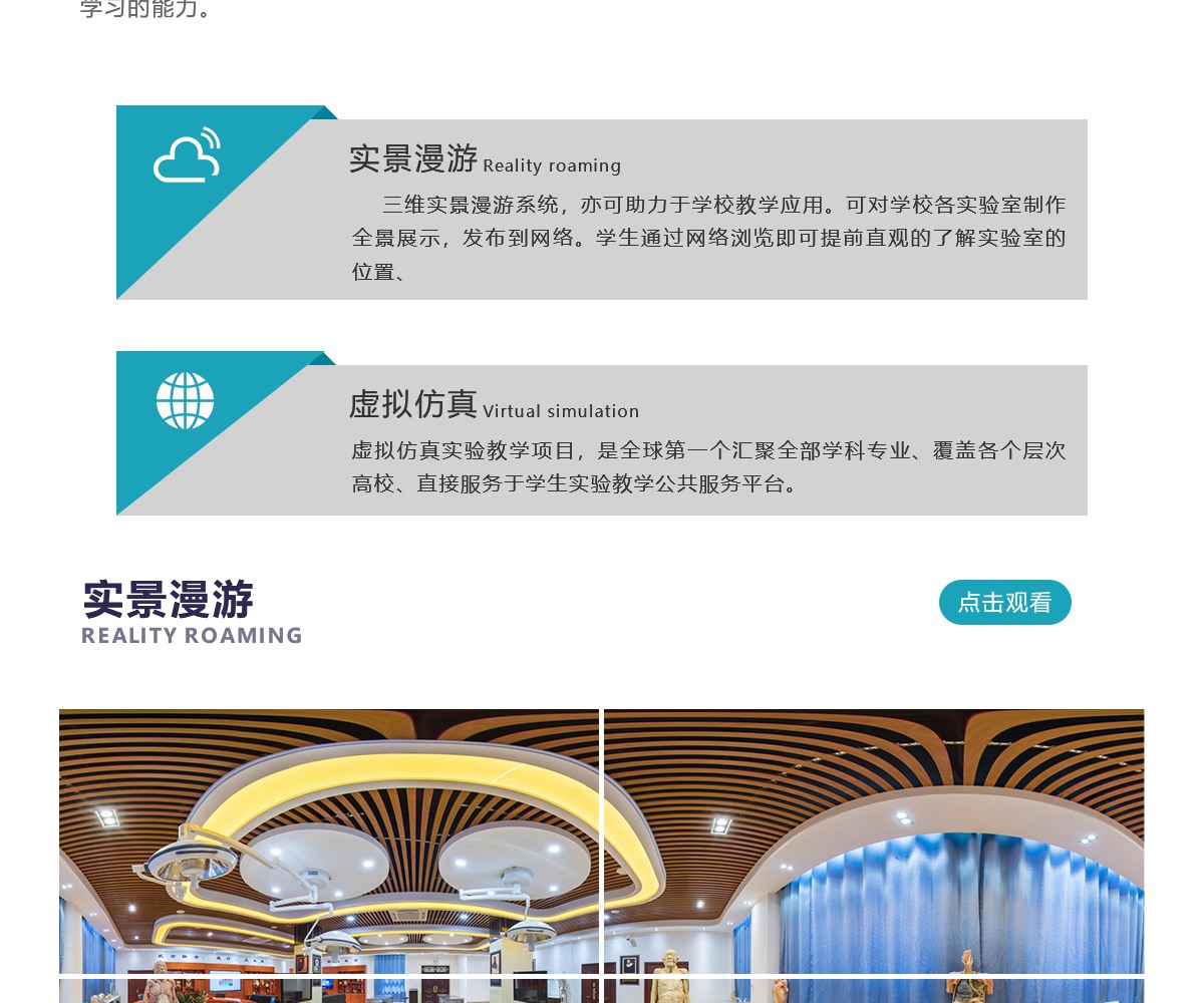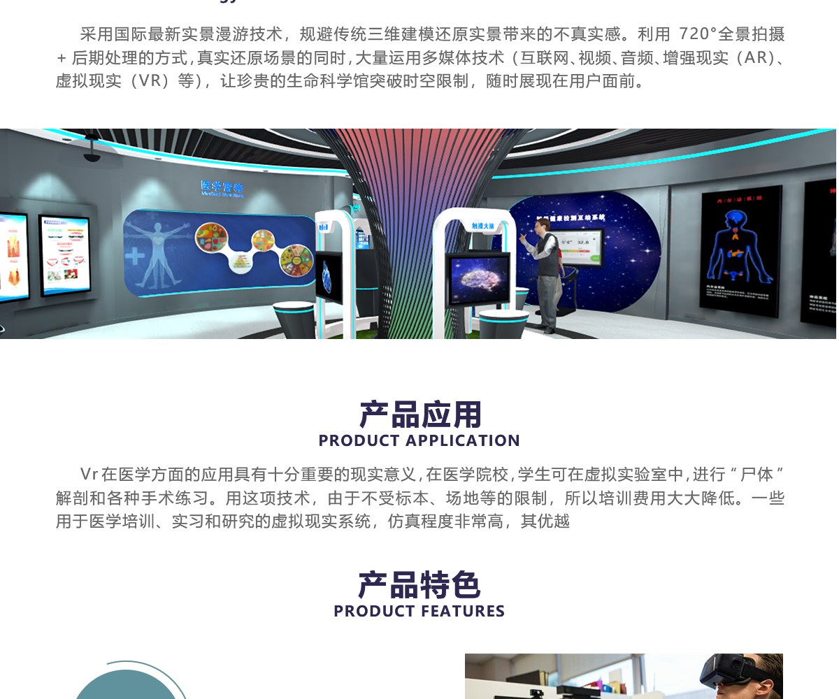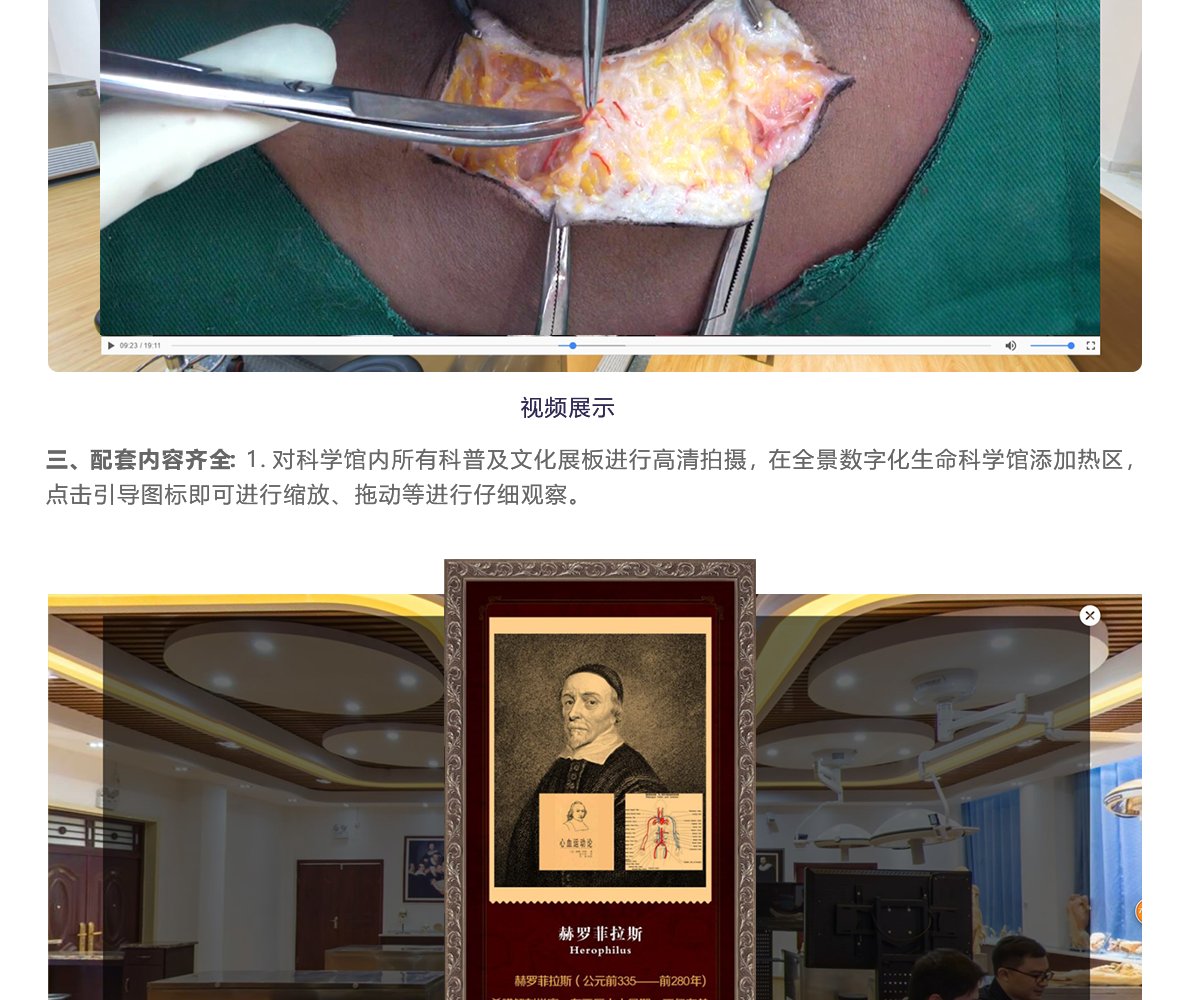 数字化生命科学馆 / 实验室(平台)是运用虚拟现实技术、 三维图形图像技术、计算机网络技术、立体显示系统、互动娱 乐技术、特种视效技术,将现实存在的生命科学馆 / 实验室以 一种多源信息融合的、交互式的三维动态视景和实体行为的系 统仿真方式使用户沉浸到该模拟环境中。参观者能在虚拟环境 中随意浏览,观看馆内各种产品、标本的三维展示并查看学习 其相关的信息资料。通过数据库检索可以查阅馆内各类产品、 标本的信息。